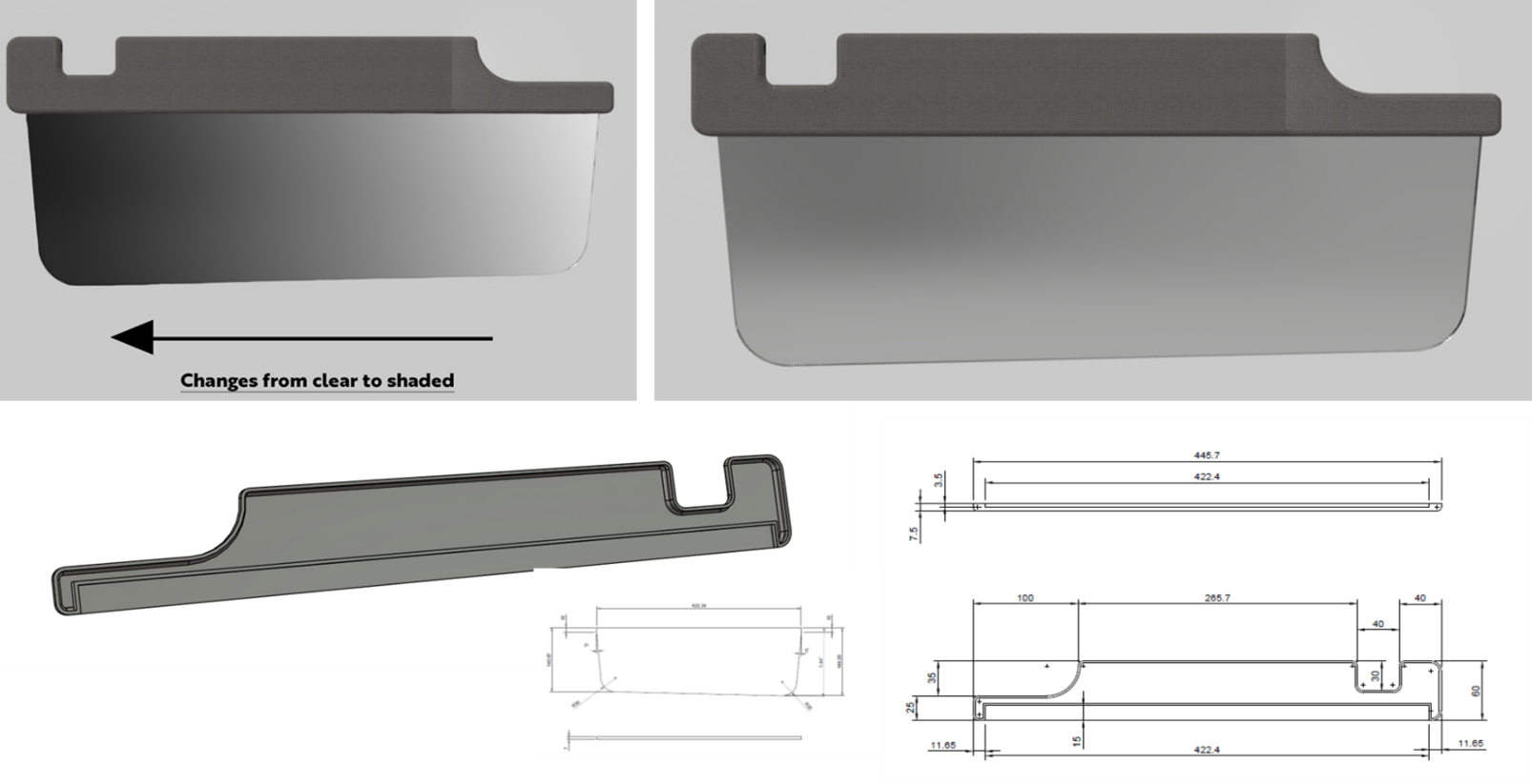 - Add 5mm radii to edges as required by FMVSS 201 Standard.